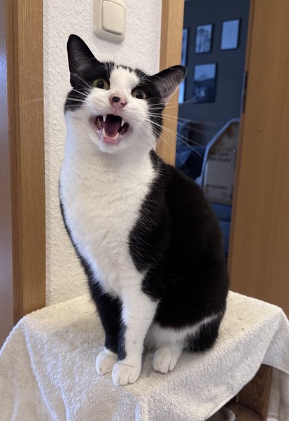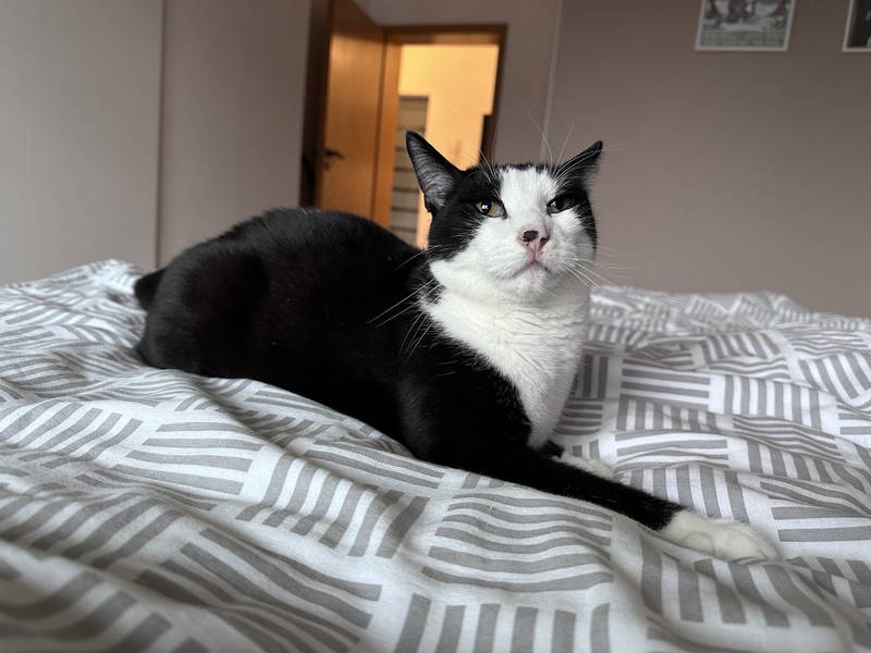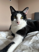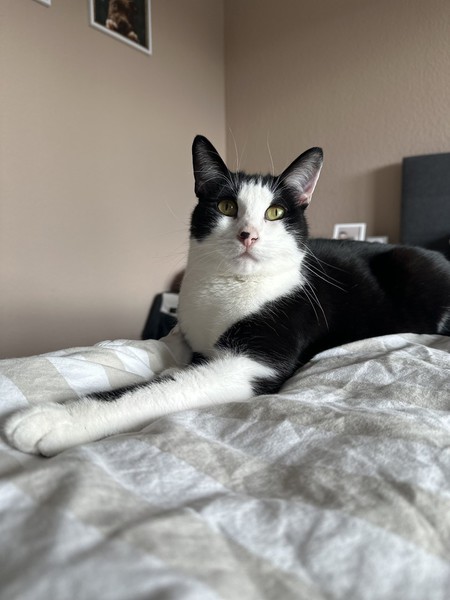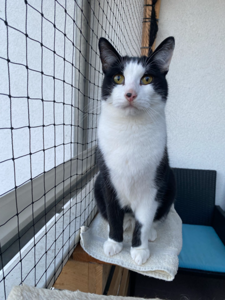 „Oreo“ ist ein ruhiger und verschmuster Kater, der bei Fremden anfangs etwas braucht, um aus sich herauszukommen. Aktuell lebt er in Wohnungshaltung mit gesichertem Balkon mit seinem Bruder und einem weiteren Kater zusammen. Mit der Situation ist er aktuell allerdings sehr unzufrieden und überfordert, weswegen für ihn auch ein neues Zuhause gesucht wird.